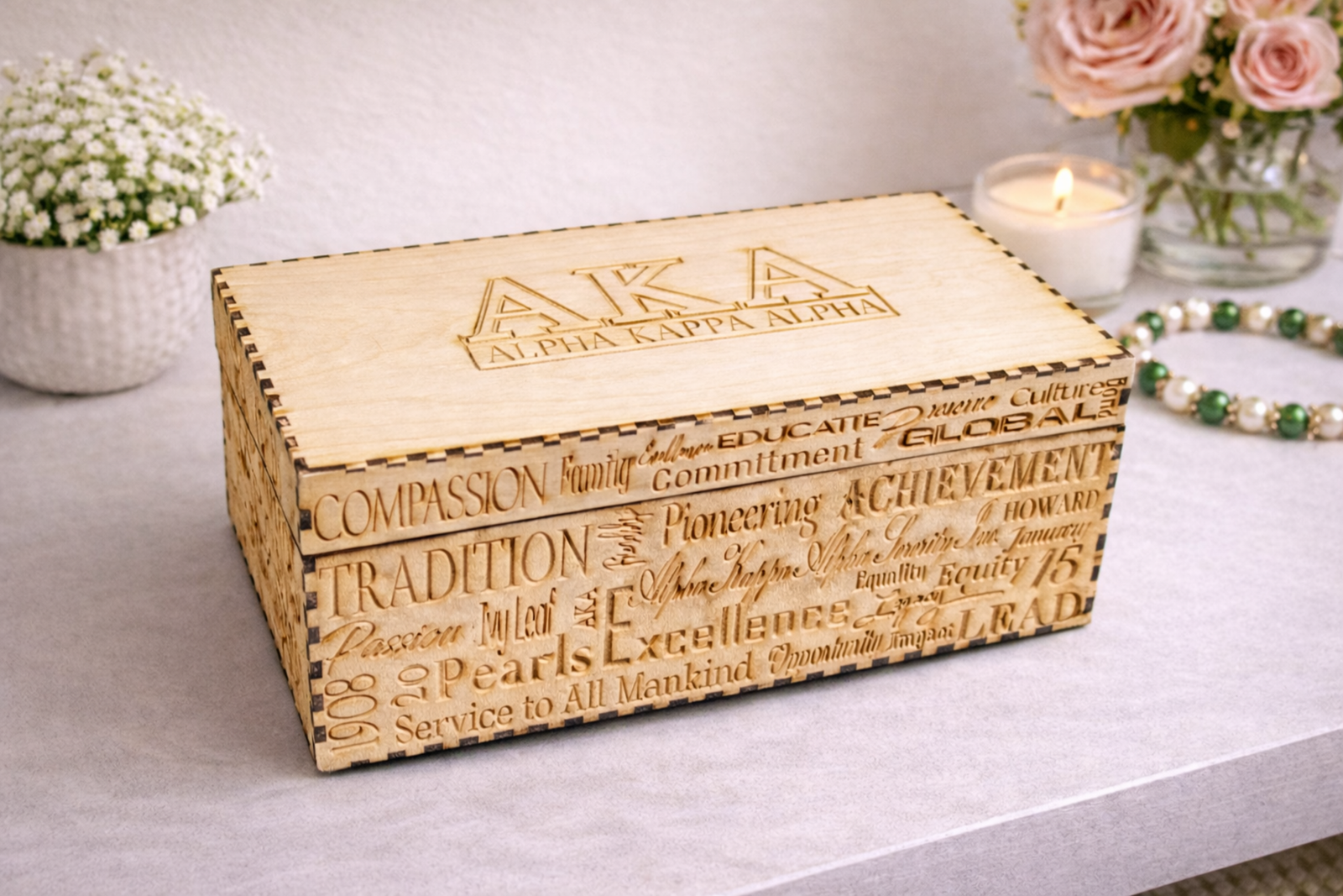 Custom engraved with your sorority and chapter information, each piece is carefully crafted and finished by hand.